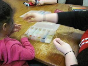 Chxi San is designed to help parents learn to interact with their children in ways that support emotional and cognitive development. Early learning opportunities in Chxi San prepare children for Head Start and Kindergarten readiness with structured play activities that increase social and developmental skills. Our culturally-specific program allows children to become engaged with their Native heritage while parents are supported with traditional Native parenting skills and values.